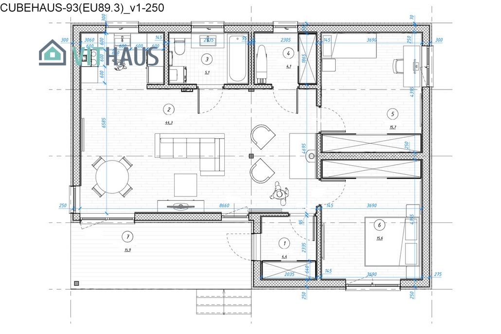 Walls: 251/301 mm = 4,46/5,44 m² K/W, U = 0,2242/0,1838