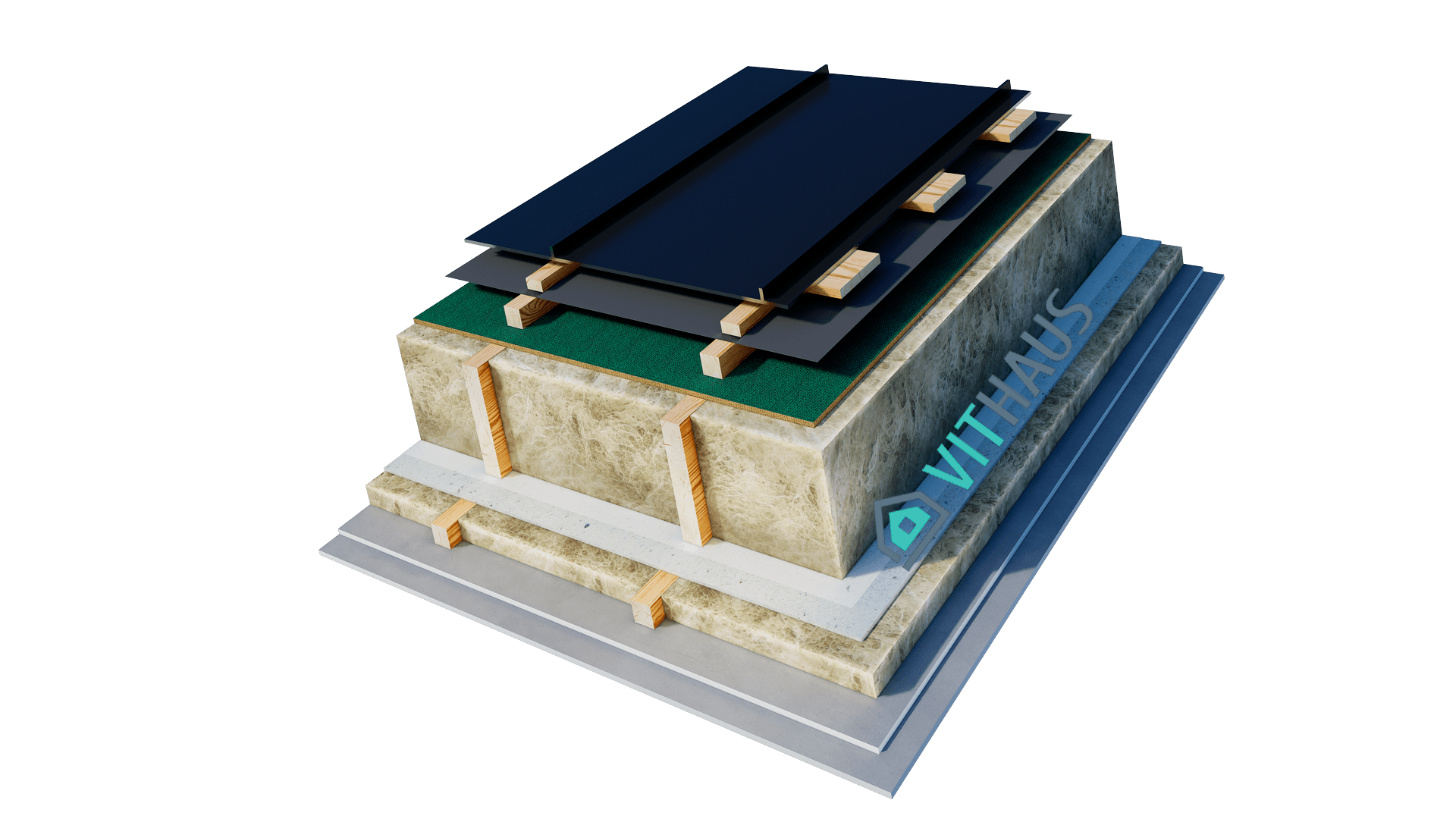 3. Antiseptisch behandelte Konterlattung aus Holz: 50 mm.