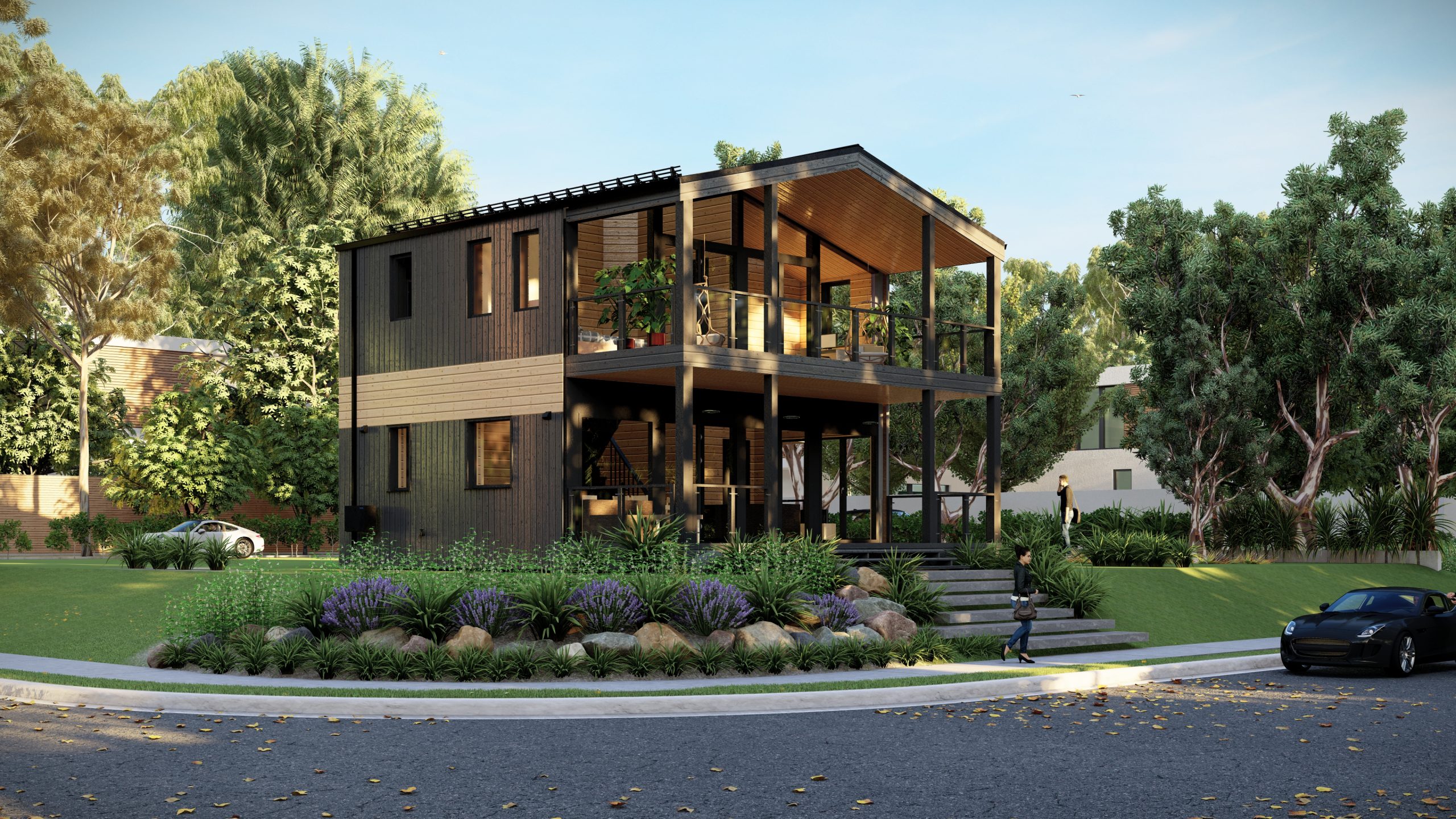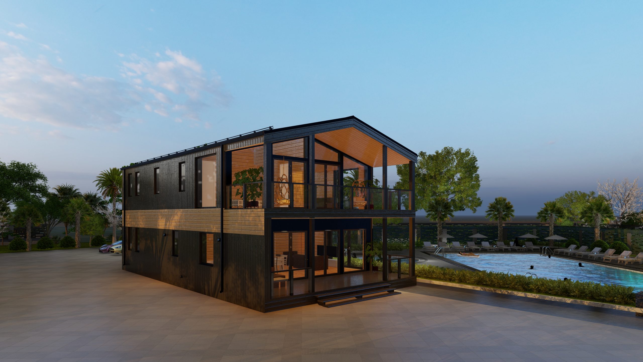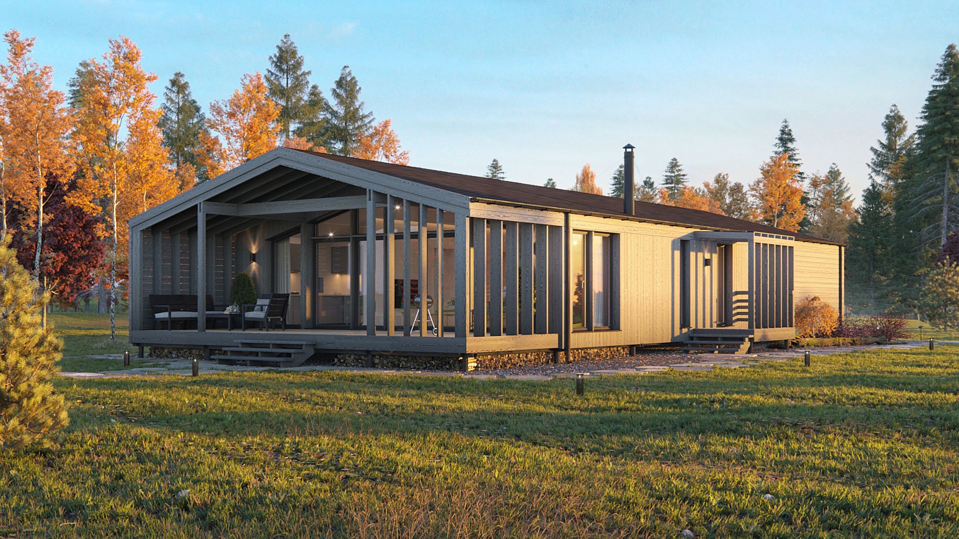 Die Häuser werden im Werk hergestellt und in vorgefertigten Blöcken mit Oberflächen und Versorgungsnetzen auf die Baustelle geliefert. Standardproduktion und schnelle Installation ermöglichen es, in kurzer Zeit bezugsfertige Wohnungen zu erhalten.