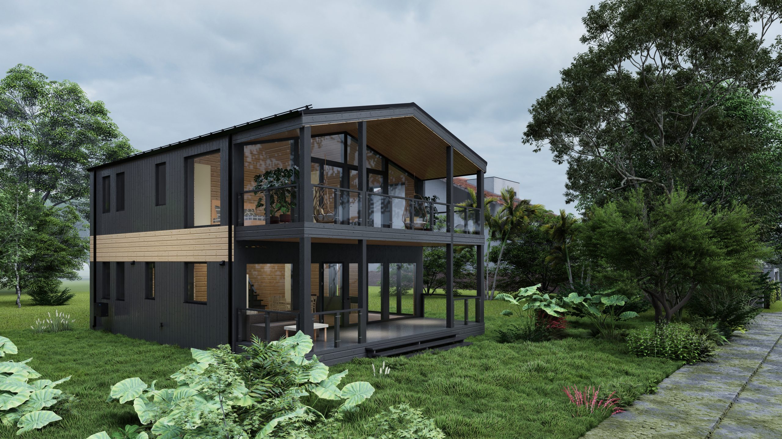 Typische zweistöckige Häuser mit Schrägdach KH-53_2L, KH-78_2L, KH-106_2L.